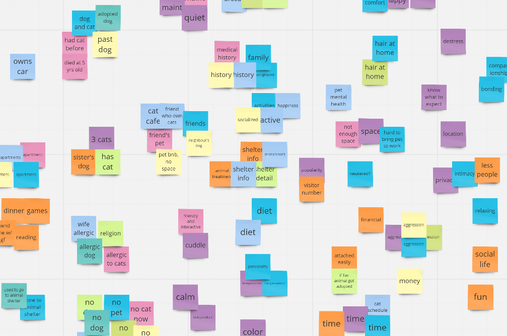 For people who cannot own a pet for various reasons, such as religious, small space, or renting policies, the only ways to spend time with an animal is to ask their friends and family or go to public pet cafes (from 9 user interviews).